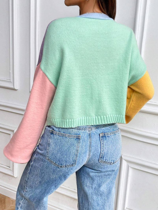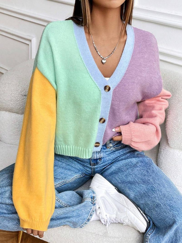 - Lantern Sleeve, Button Front, Drop Shoulder, Colorblock, Contrast Cardigan, Y2k Sweater