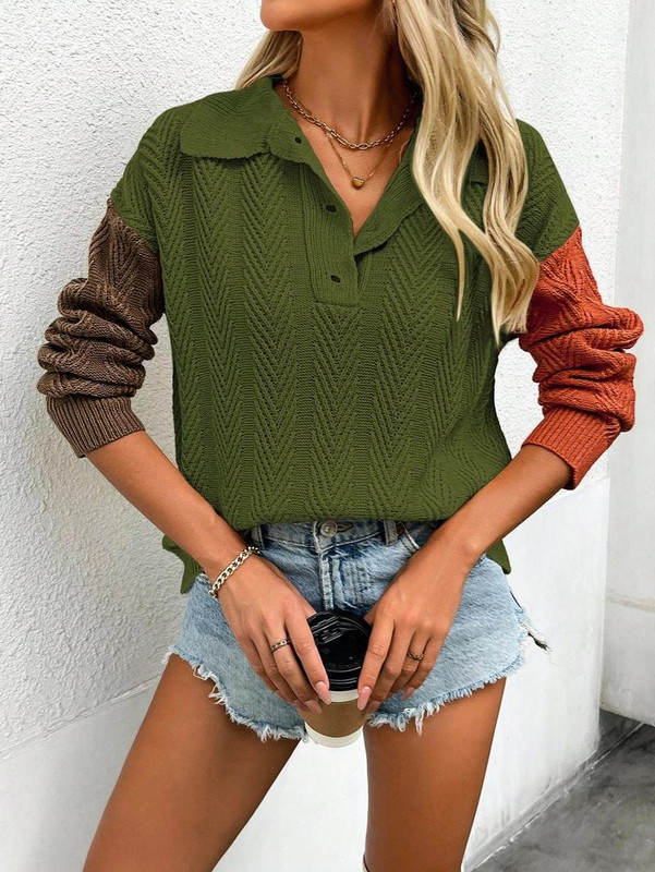 - Design: This color block top for women features a unique patchwork design combined with a half-button collar and textured knit pattern. The drop shoulder construction and loose fit create a relaxed silhouette, while the long sleeves provide coverage and warmth. These design elements work together to create a fashionable yet functional piece perfect for casual wear.
